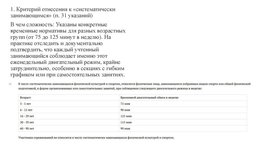 1. Критерий отнесения к «систематическизанимающимся» (п. 31 указаний)