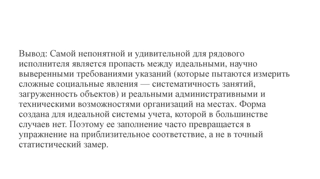 Вывод: Самой непонятной и удивительной для рядовогоисполнителя является пропасть между идеальными, научно