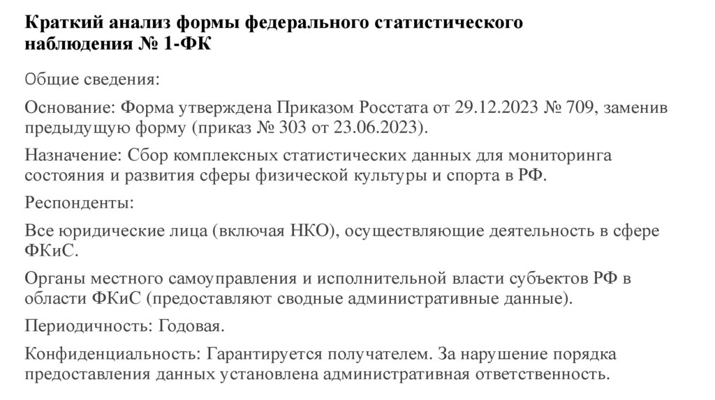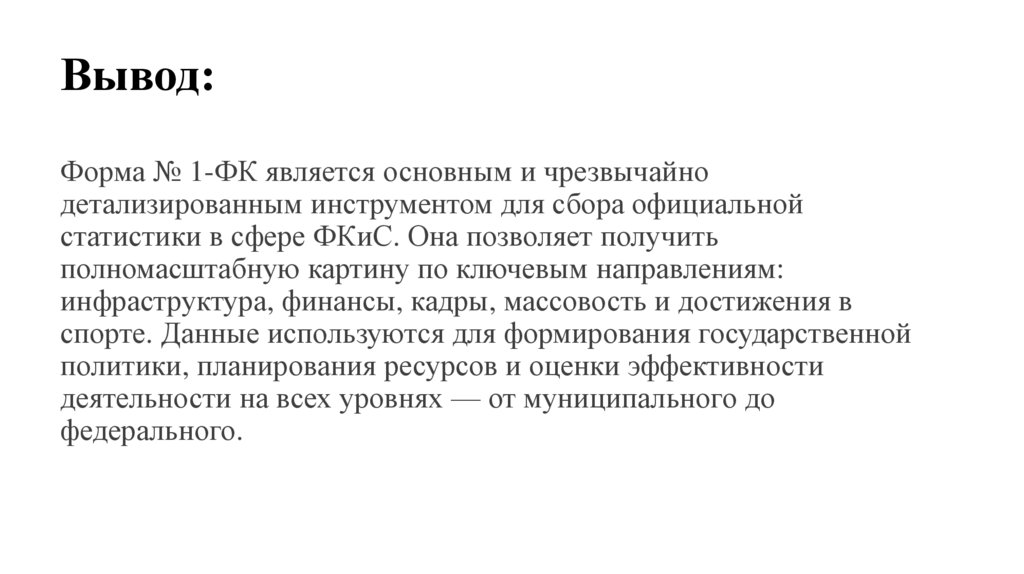 Краткий анализ формы федерального статистическогонаблюдения № 1-ФК