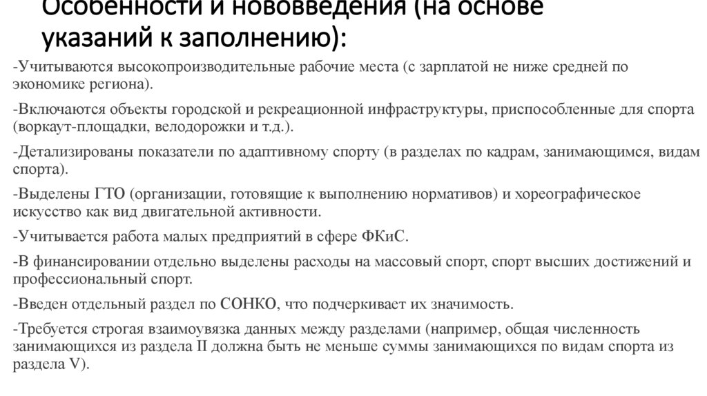 Особенности и нововведения (на основеуказаний к заполнению):