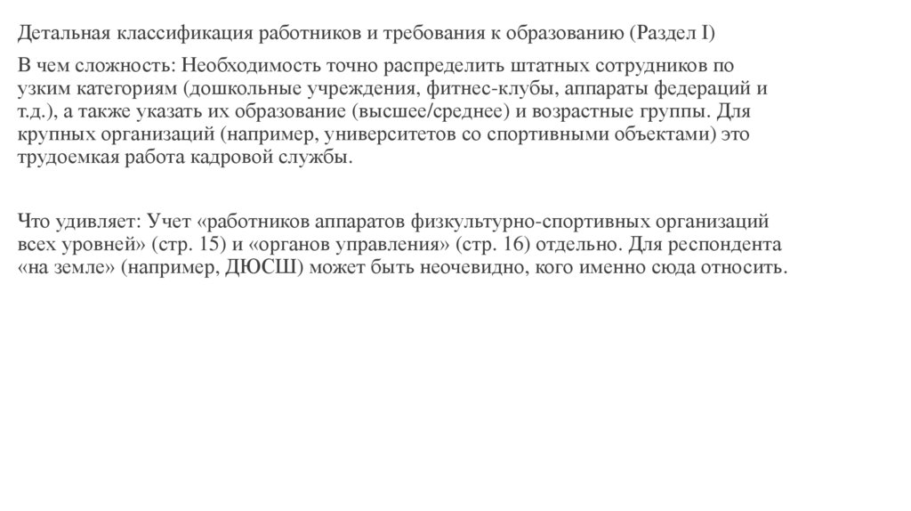 Детальная классификация работников и требования к образованию (Раздел I)В чем сложность: Необходимость точно распределить штатных сотрудников по