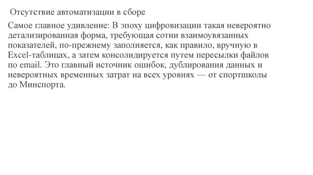Отсутствие автоматизации в сбореСамое главное удивление: В эпоху цифровизации такая невероятно