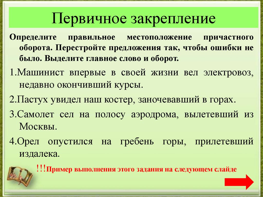Определите правильное местоположение причастногооборота. Перестройте предложения так, чтобы ошибки не