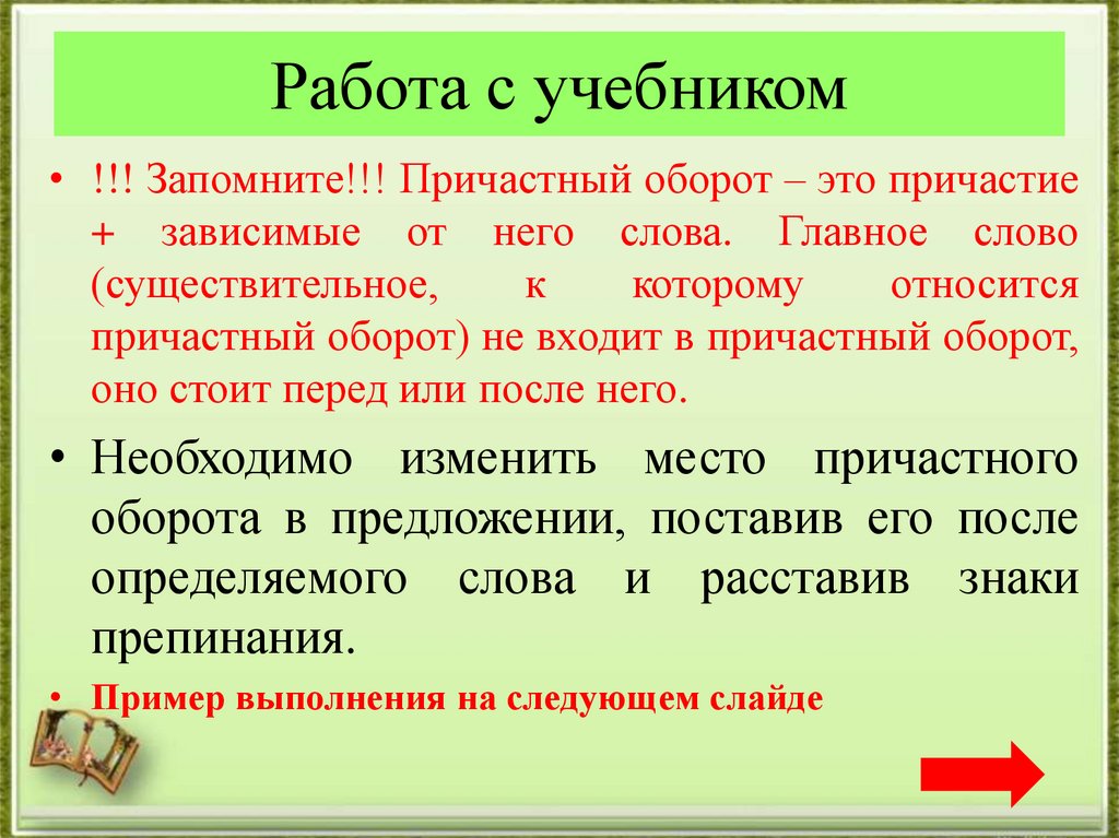 • !!! Запомните!!! Причастный оборот – это причастие+ зависимые от него слова. Главное слово