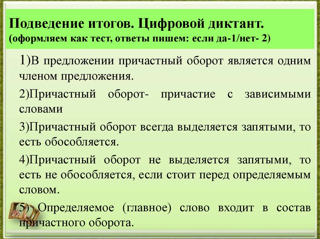 17. Подведение итогов. Цифровой диктант. (оформляем как тест, ответы пишем: если да-1/нет- 2)