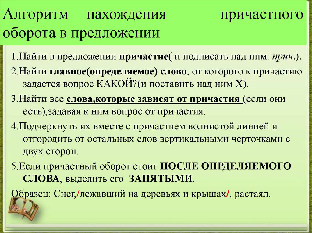 1.Найти в предложении причастие( и подписать над ним: прич.).