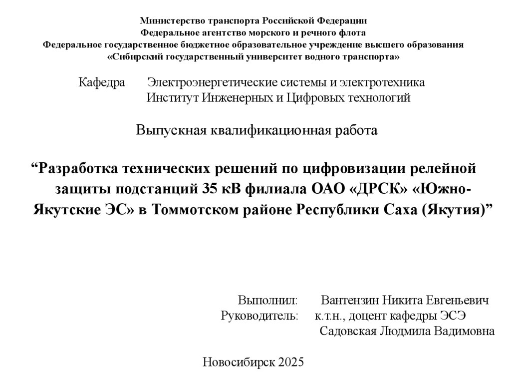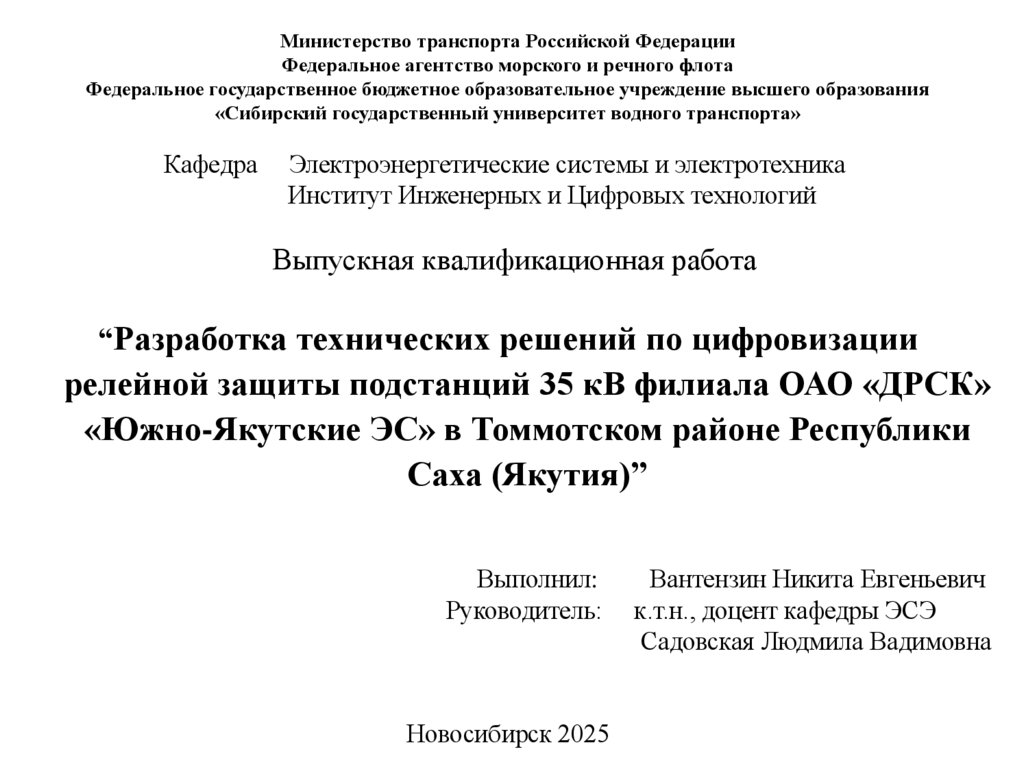 Целью данной работы является: разработка техническихрешений по цифровизации систем релейной защиты и автоматики