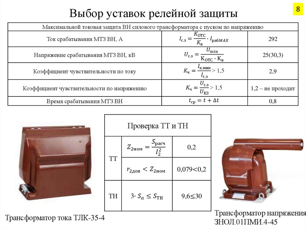 8Максимальной токовая защита ВН силового трансформатора с пуском по напряжению
