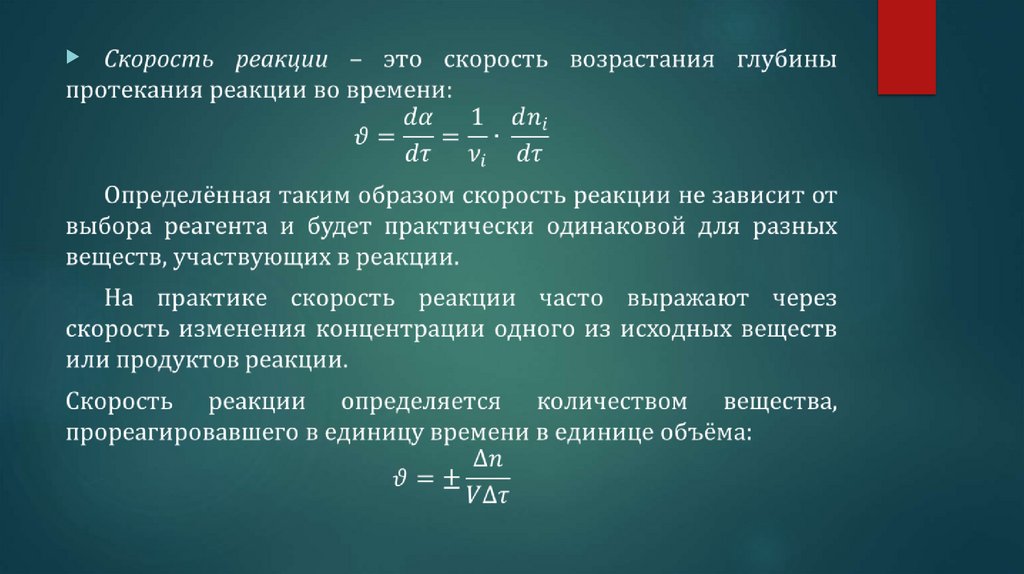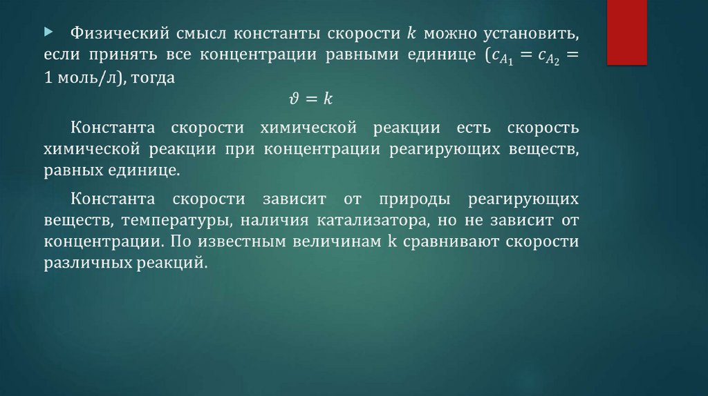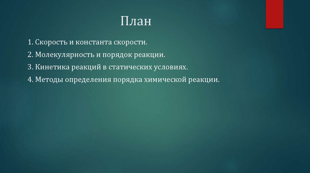 1. Скорость и константа скорости.2. Молекулярность и порядок реакции.