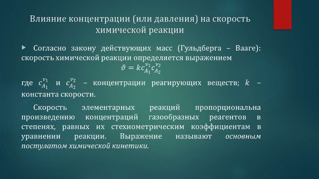 11. Влияние концентрации (или давления) на скорость химической реакции