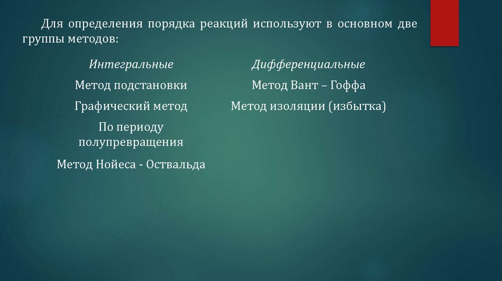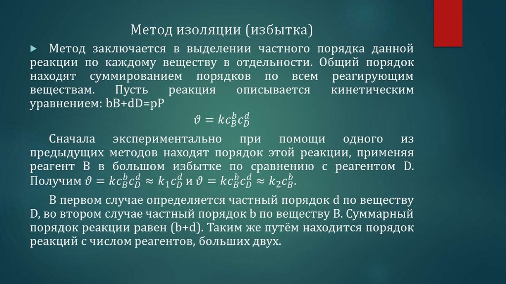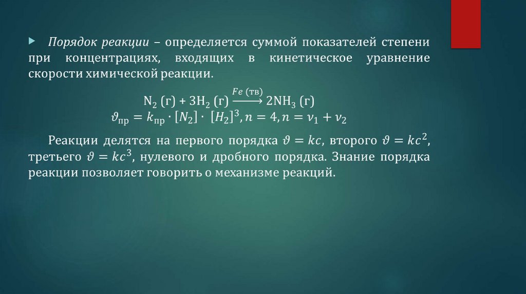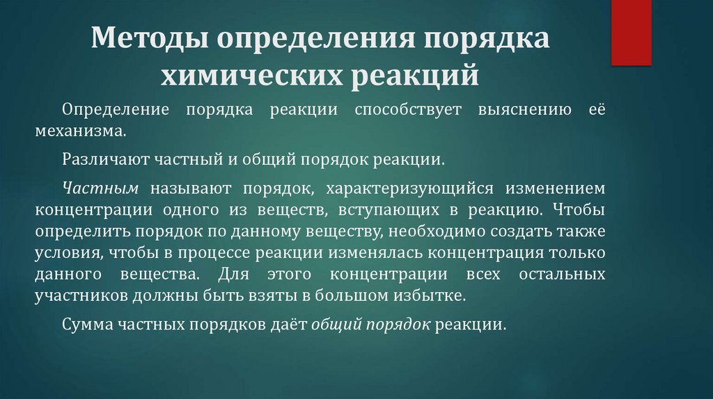 Определение порядка реакции способствует выяснению еёмеханизма.