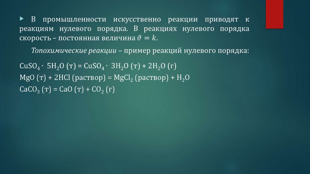 реакции). Нулевой порядок наблюдается в таких гетерогенных