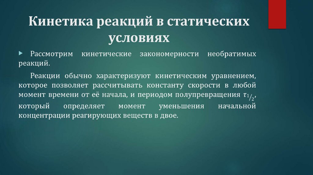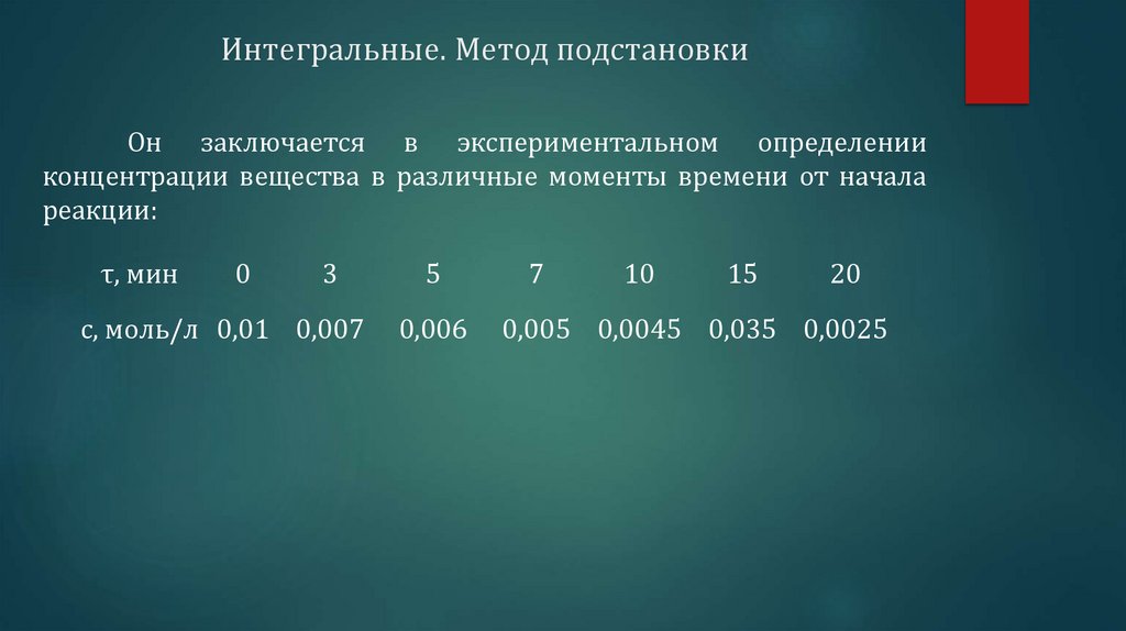 Он заключается в экспериментальном определенииконцентрации вещества в различные моменты времени от начала