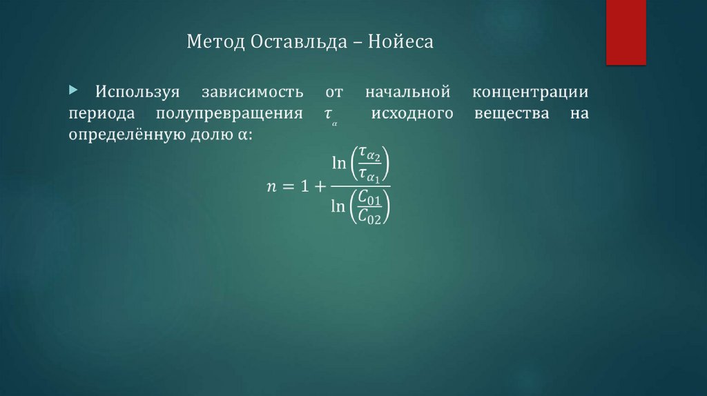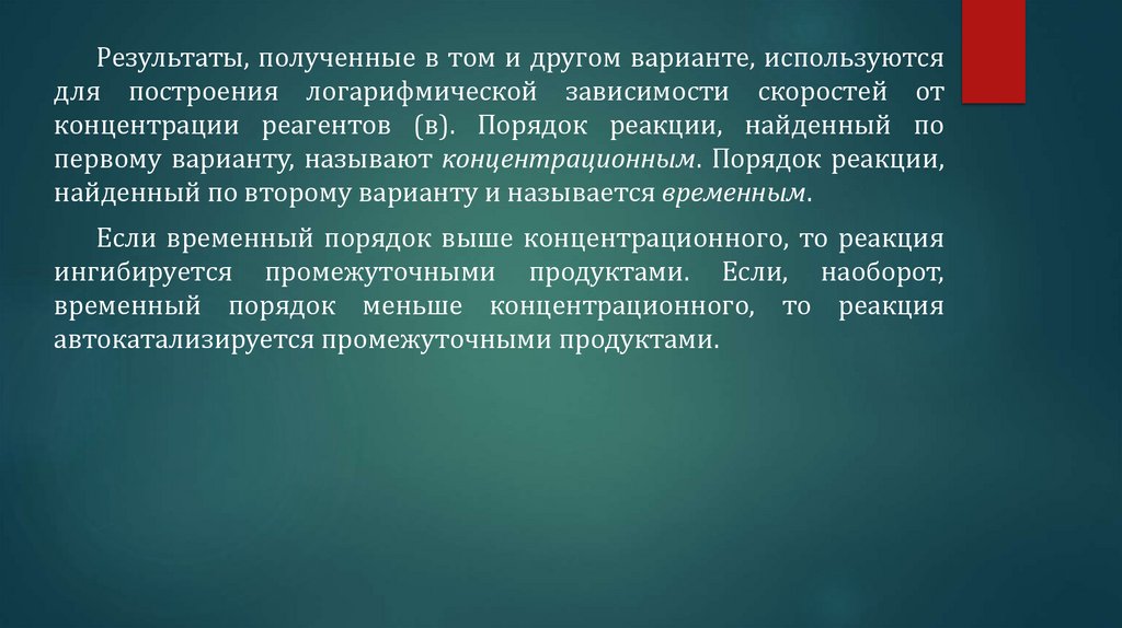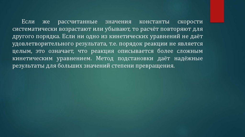 Если же рассчитанные значения константы скоростисистематически возрастают или убывают, то расчёт повторяют для