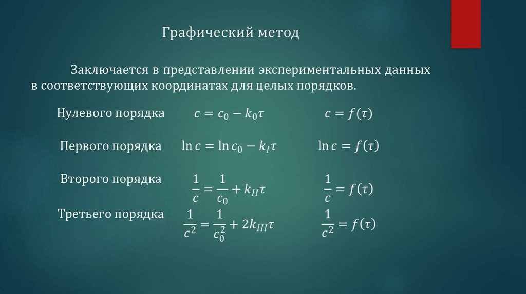 Заключается в представлении экспериментальных данныхв соответствующих координатах для целых порядков.