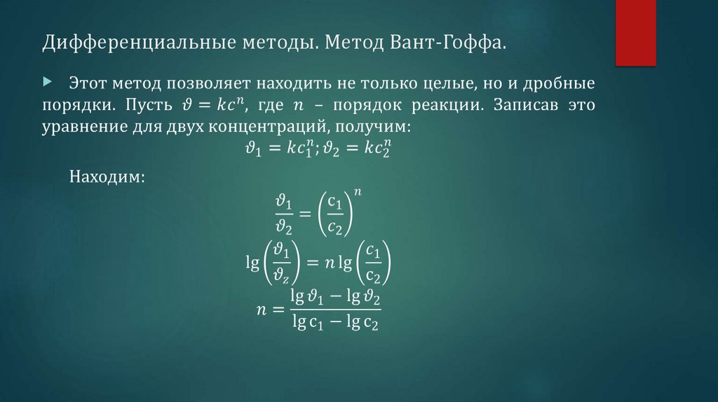 41. Дифференциальные методы. Метод Вант-Гоффа.
