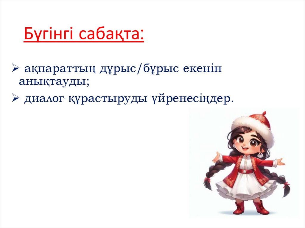 ақпараттың дұрыс/бұрыс екенінанықтауды;