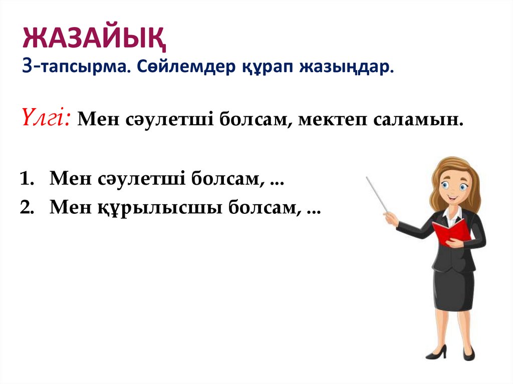 6. ЖАЗАЙЫҚ 3-тапсырма. Сөйлемдер құрап жазыңдар.