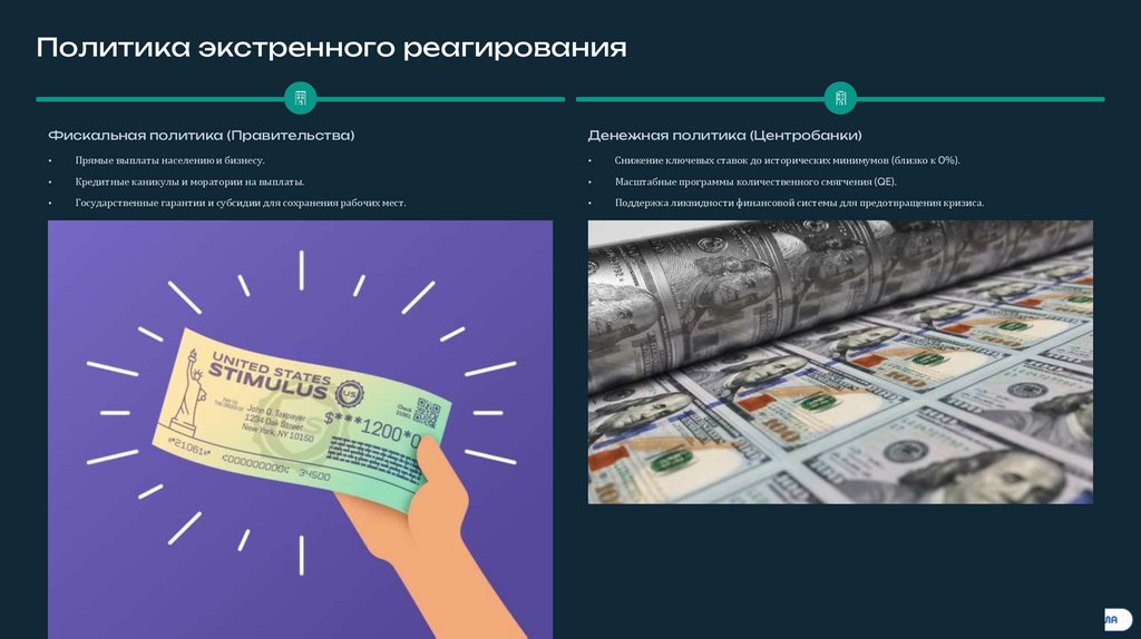Поддержка ликвидности финансовой системы для предотвращения кризиса.