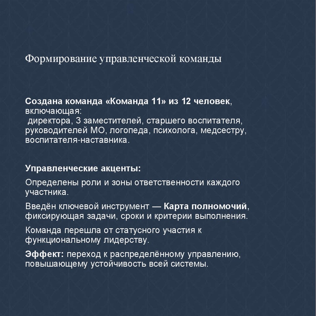 Формирование управленческой командыСоздана команда «Команда 11» из 12 человек,