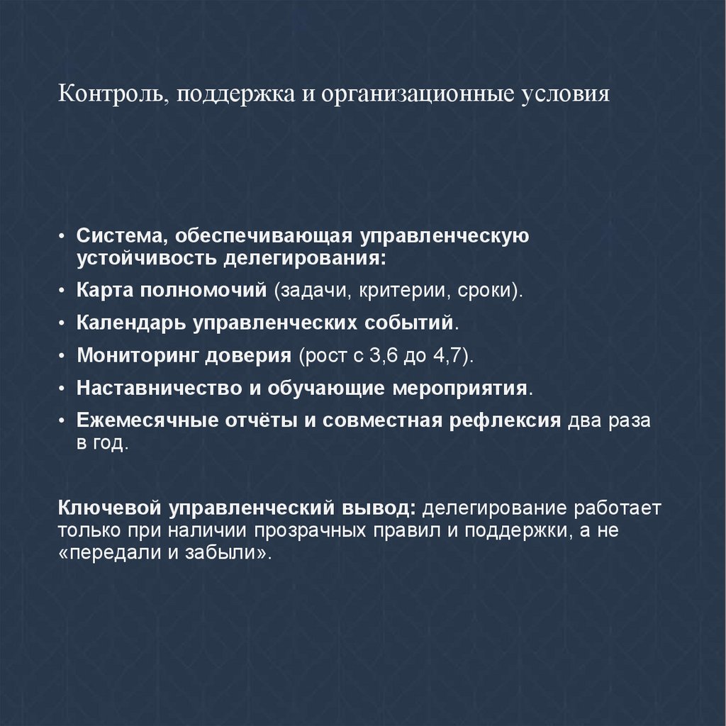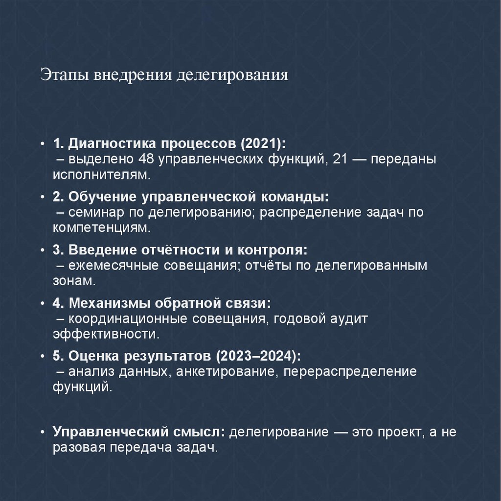 • Управленческий смысл: делегирование — это проект, а не