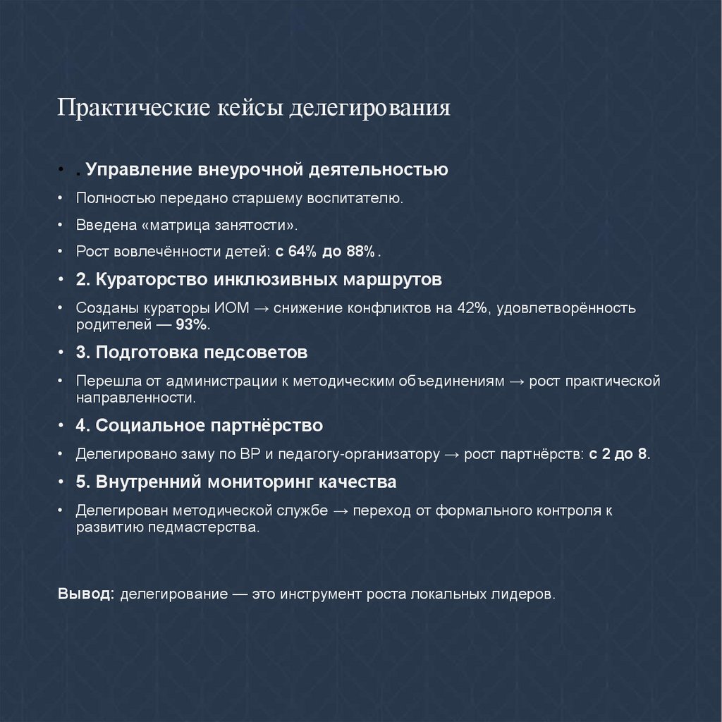 Практические кейсы делегирования• . Управление внеурочной деятельностью