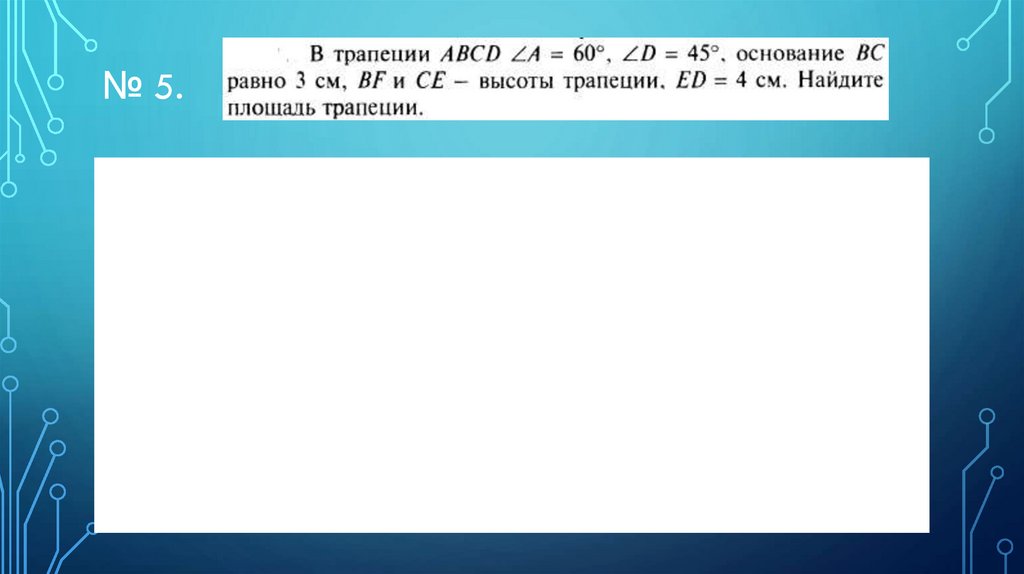 5. № 4. Чему равна площадь равнобедренного треугольника с боковой стороной в 13 см и основанием в 24 см?