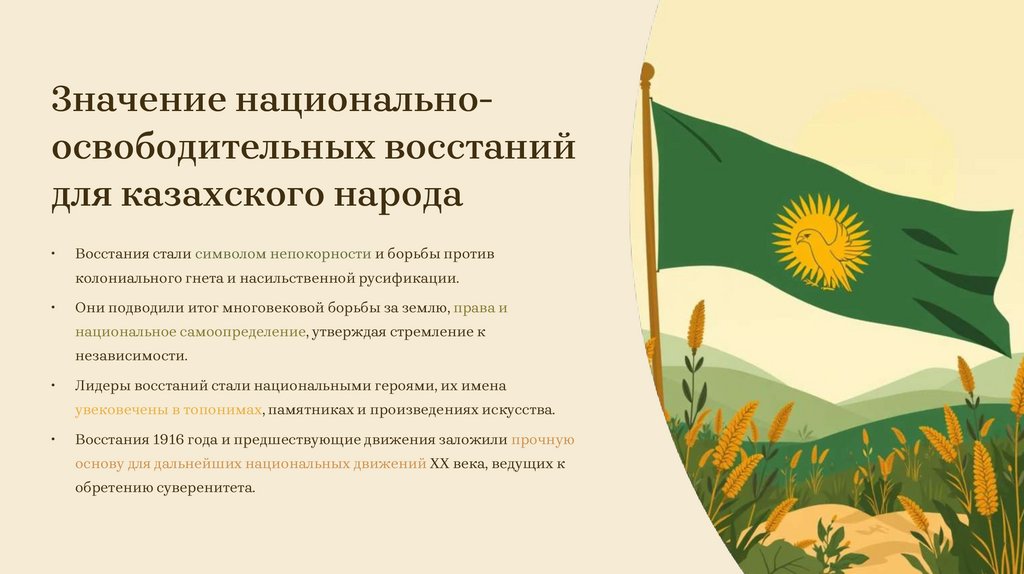 Значение национальноосвободительных восстанийдля казахского народа