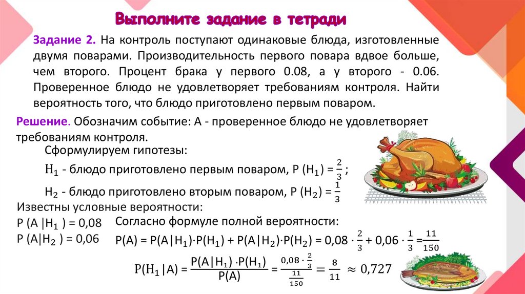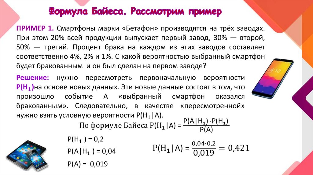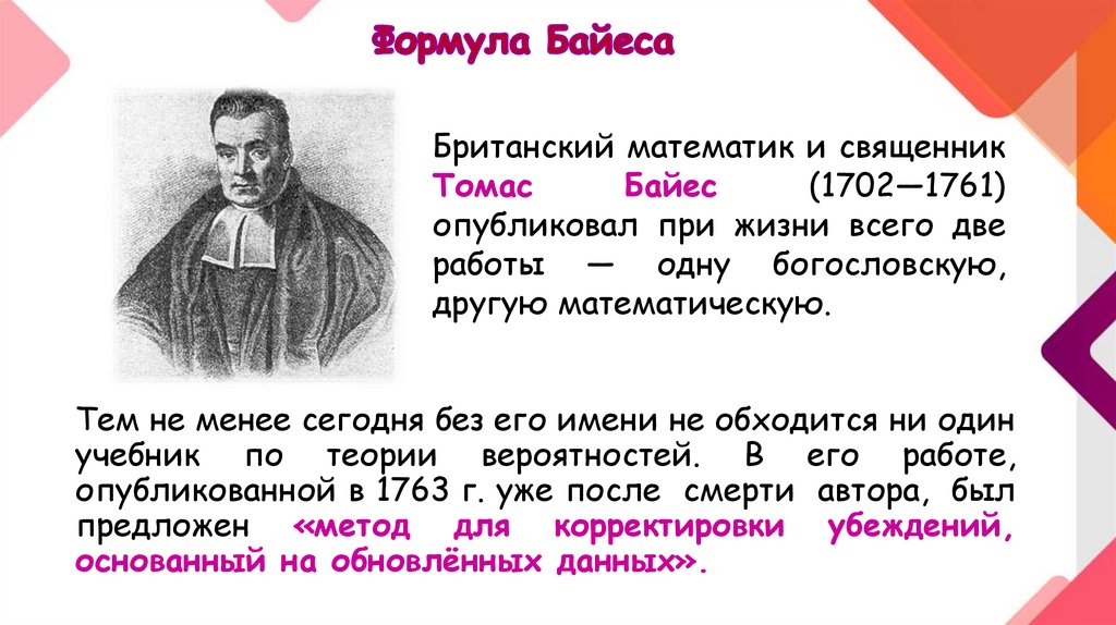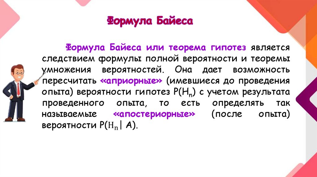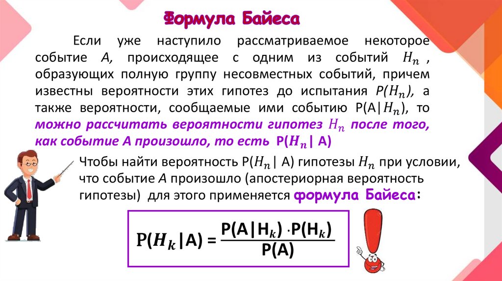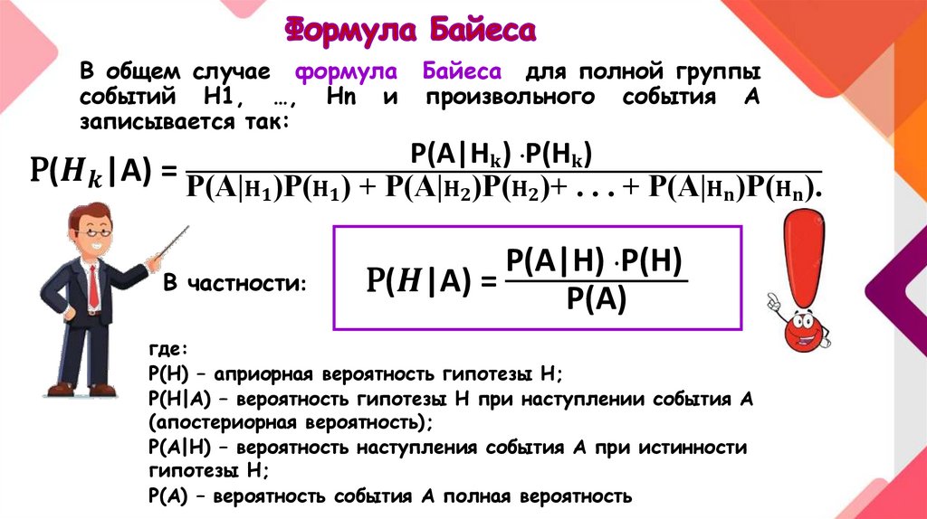 Формула Байеса или теорема гипотез являетсяследствием формулы полной вероятности и теоремы