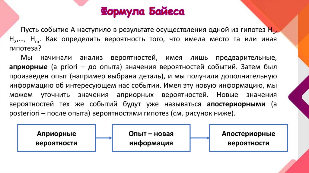 posteriori – после опыта) вероятностями гипотез (см. рисунок ниже).