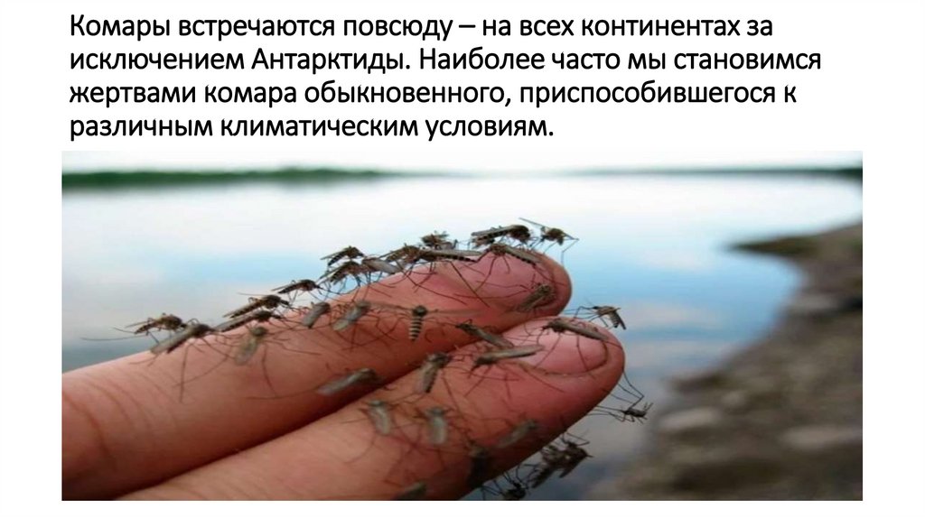 2. Комары встречаются повсюду – на всех континентах за исключением Антарктиды. Наиболее часто мы становимся жертвами комара