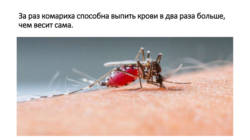 12. За раз комариха способна выпить крови в два раза больше, чем весит сама.