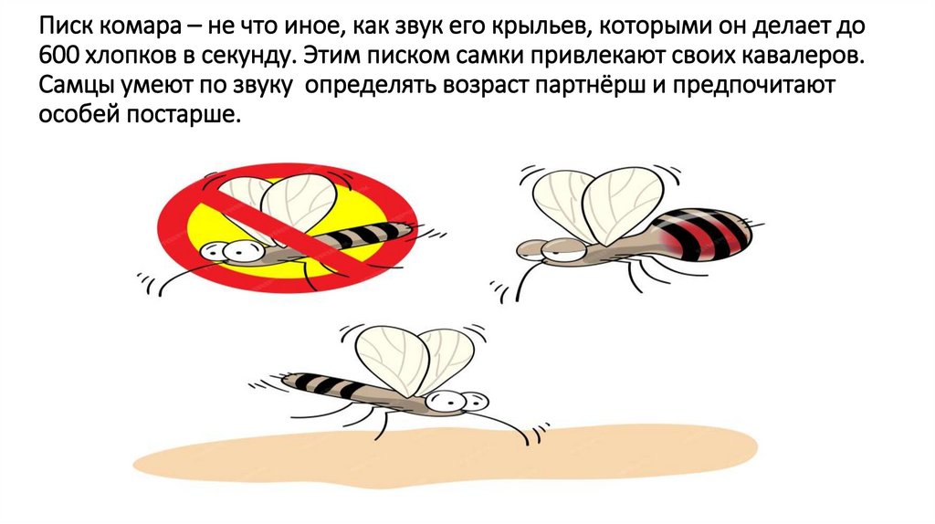 14. Писк комара – не что иное, как звук его крыльев, которыми он делает до 600 хлопков в секунду. Этим писком самки привлекают