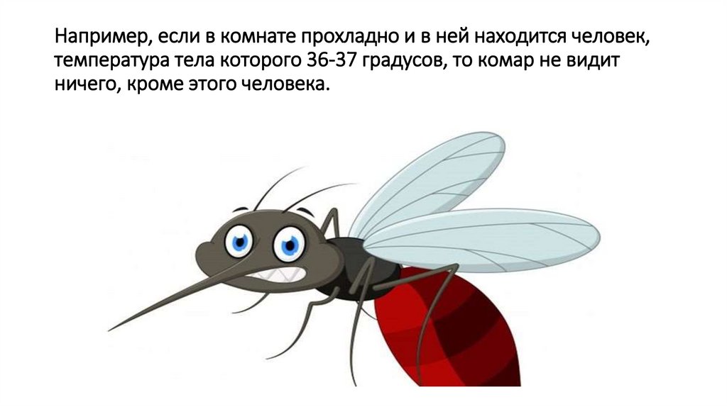 температуре.8. Например, если в комнате прохладно и в ней находится человек, температура тела которого 36-37 градусов, то комар не видит