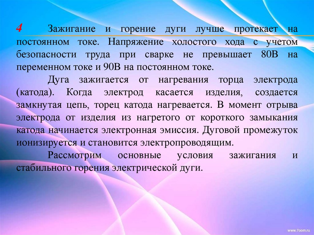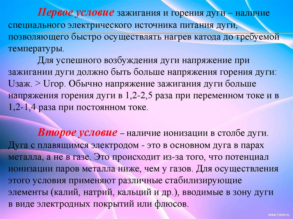 4. Условия горения сварочной дуги.