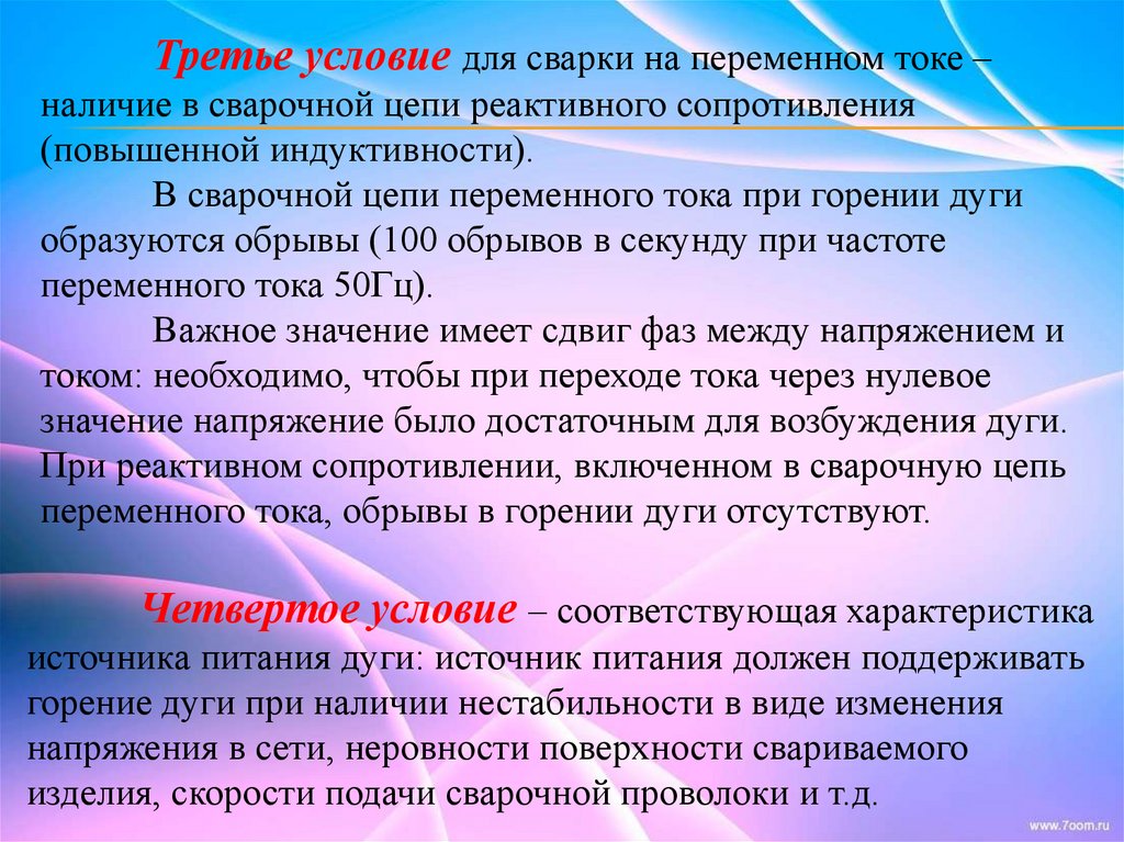 Третье условие для сварки на переменном токе –наличие в сварочной цепи реактивного сопротивления
