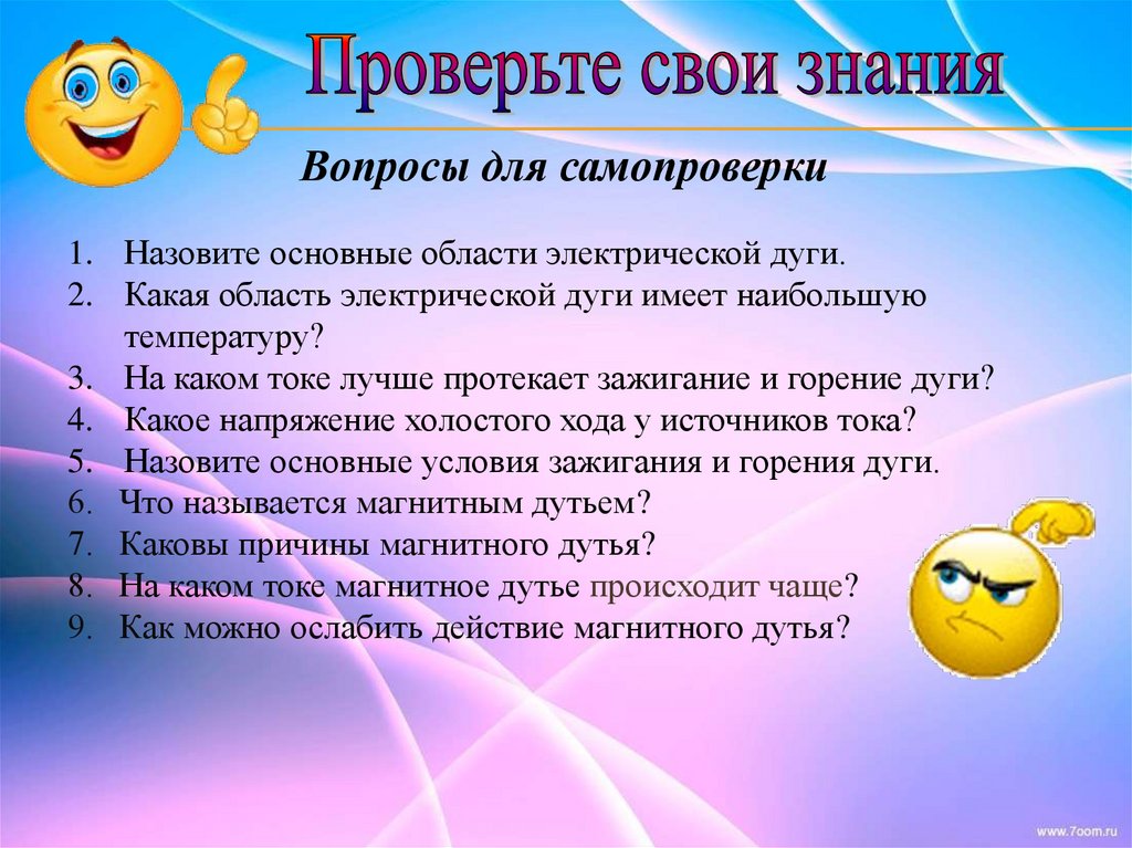 Вопросы для самопроверки1. Назовите основные области электрической дуги.