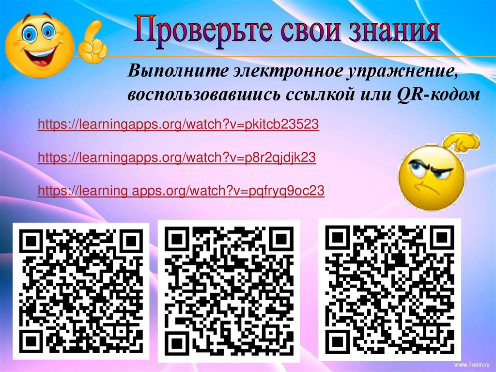Выполните электронное упражнение,воспользовавшись ссылкой или QR-кодом
