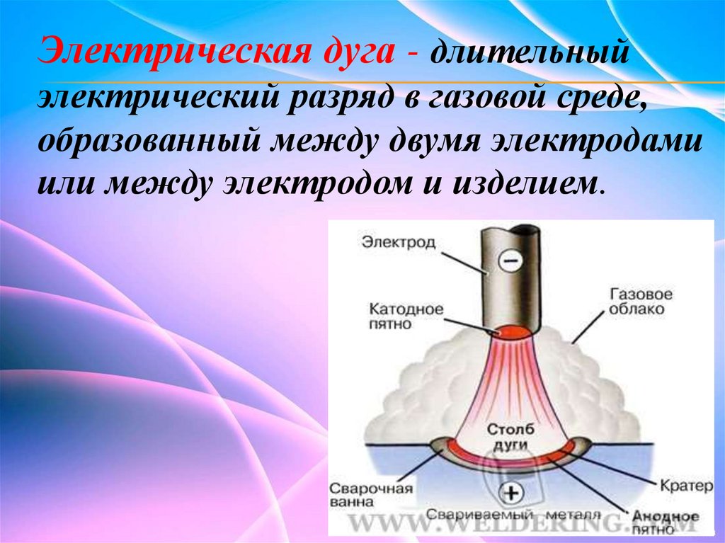 Электрическая дуга - длительныйэлектрический разряд в газовой среде,