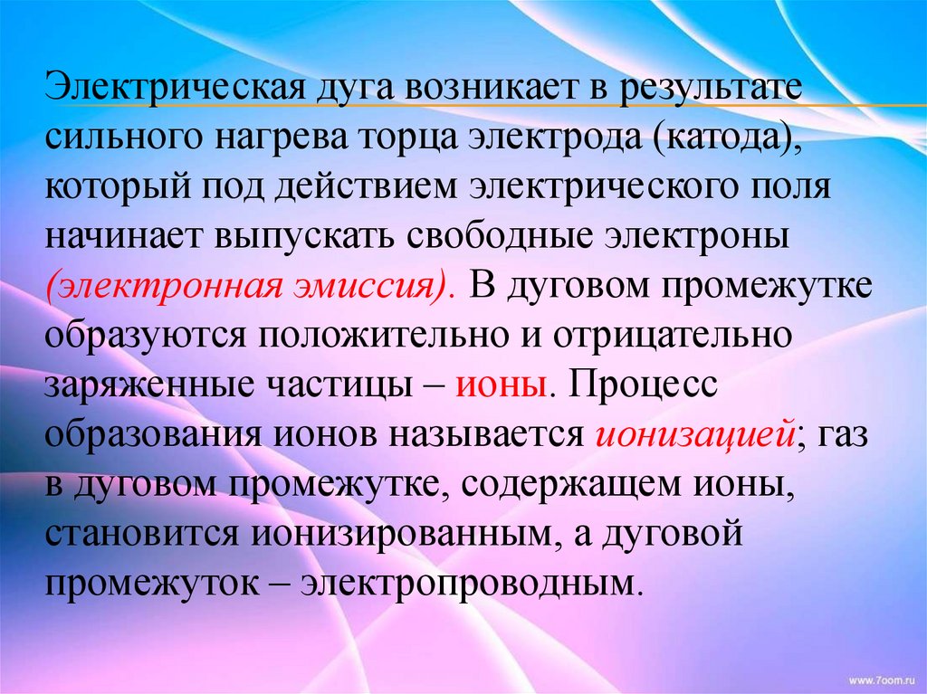 Электрическая дуга возникает в результатесильного нагрева торца электрода (катода),