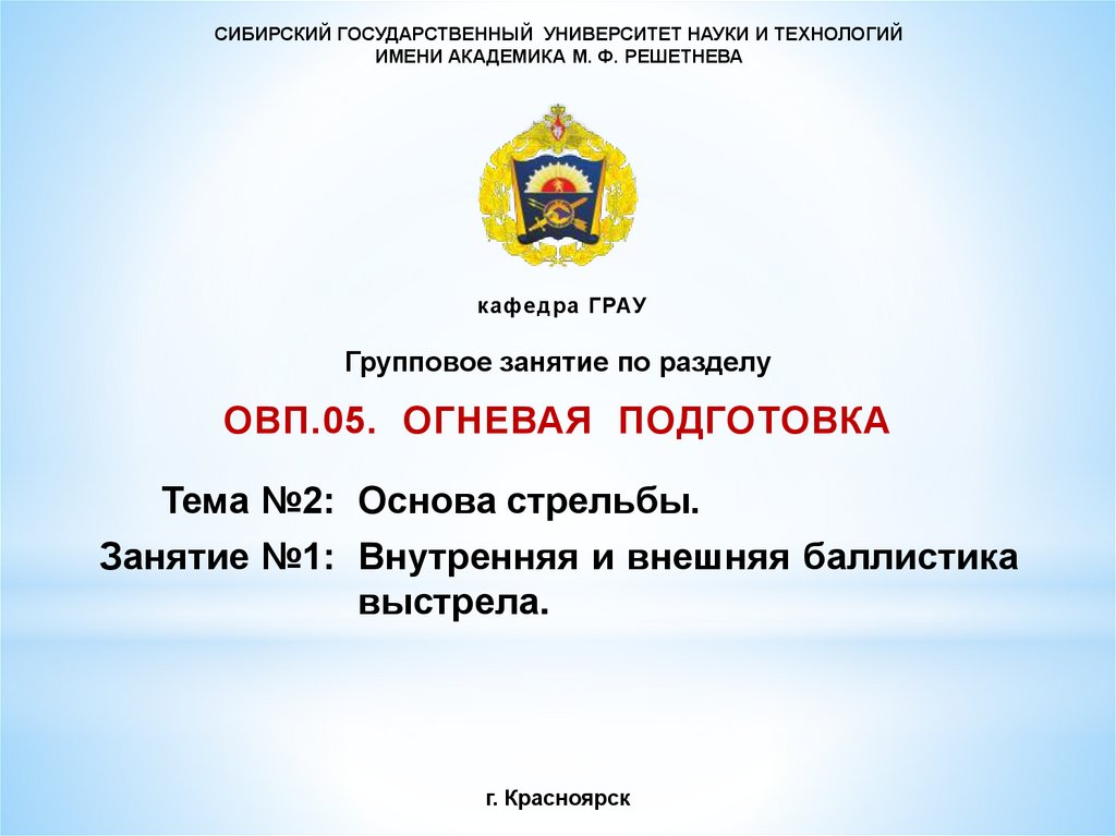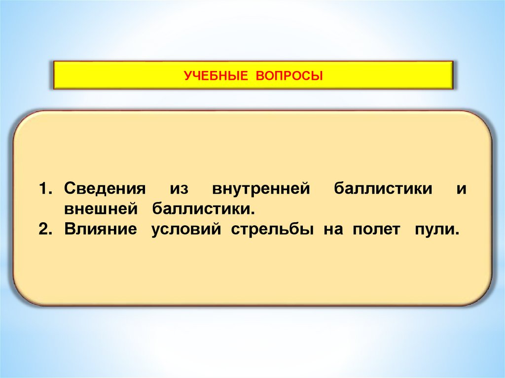 УЧЕБНЫЕ ВОПРОСЫ1. Сведения из внутренней баллистики и