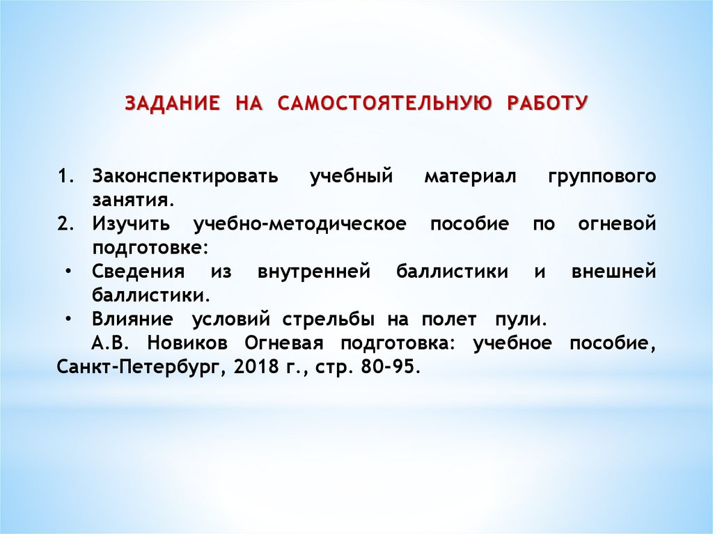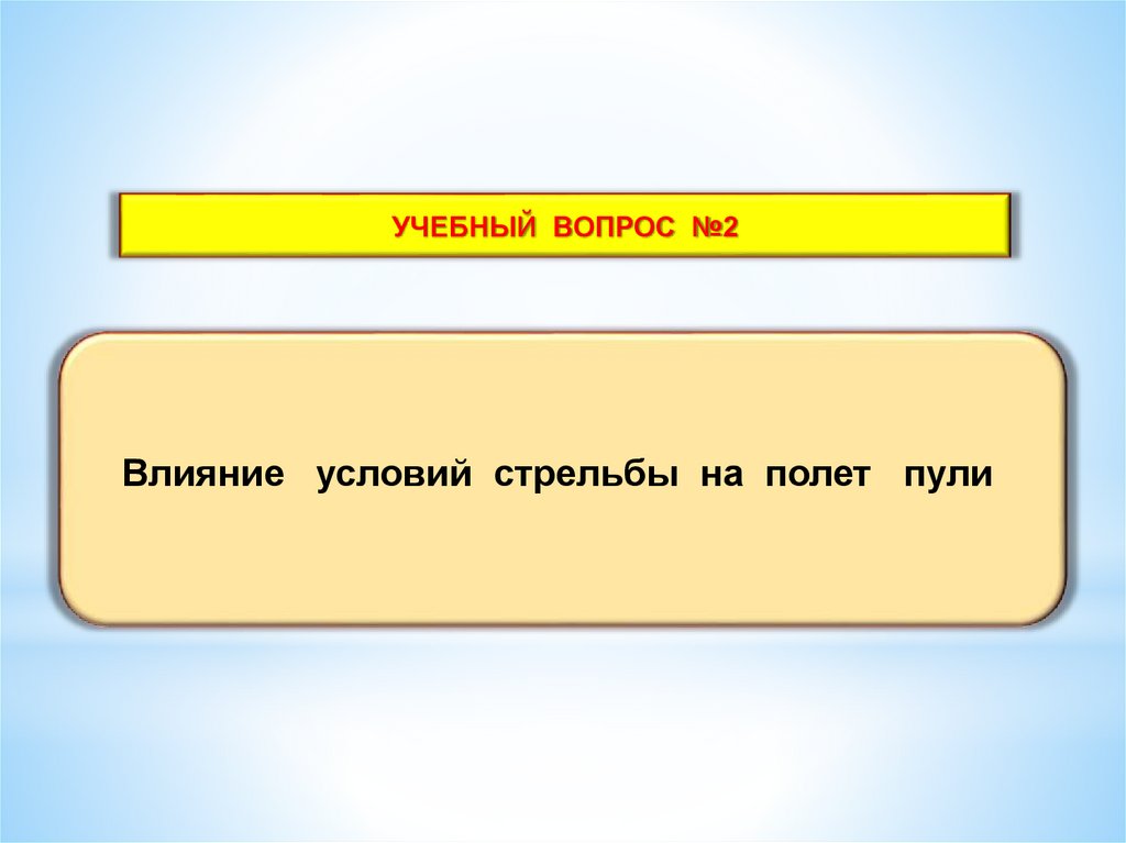 УЧЕБНЫЙ ВОПРОС №2Влияние условий стрельбы на полет пули
