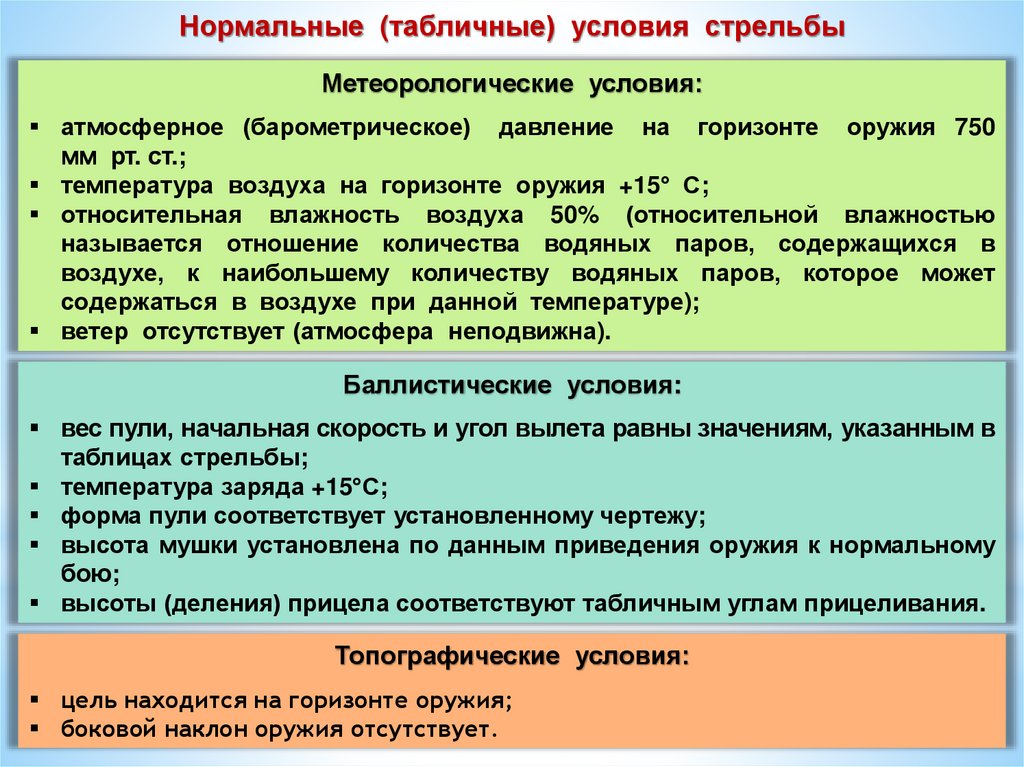 Нормальные (табличные) условия стрельбыМетеорологические условия: