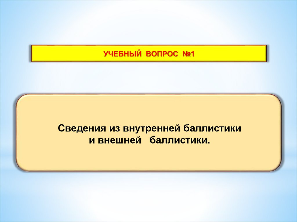 УЧЕБНЫЙ ВОПРОС №1Сведения из внутренней баллистики