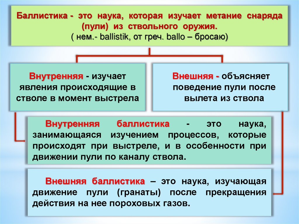 Баллистика - это наука, которая изучает метание снаряда(пули) из ствольного оружия.