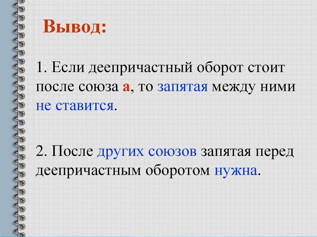 1. Если деепричастный оборот стоитпосле союза а, то запятая между ними