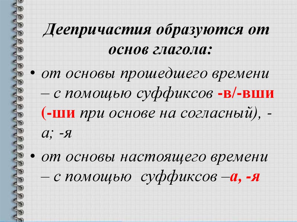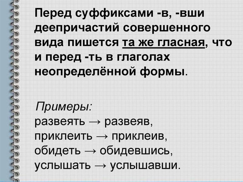 Перед суффиксами -в, -вшидеепричастий совершенного