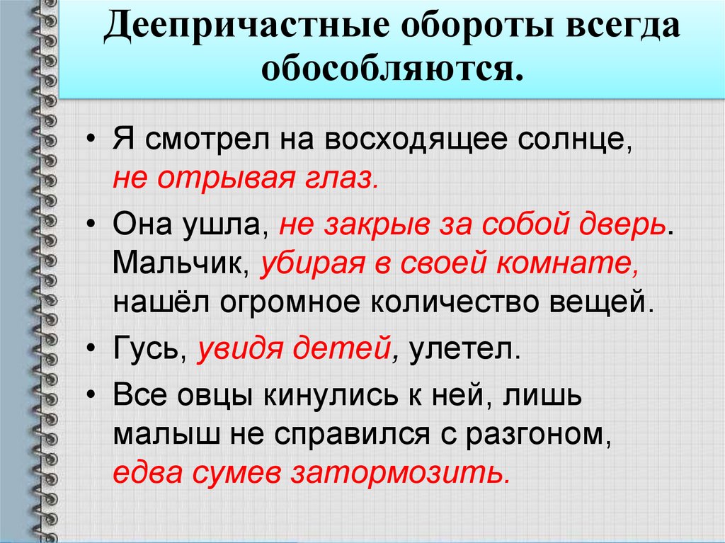 10. Обособление обстоятельств, выраженных деепричастиями и деепричастными оборотами.