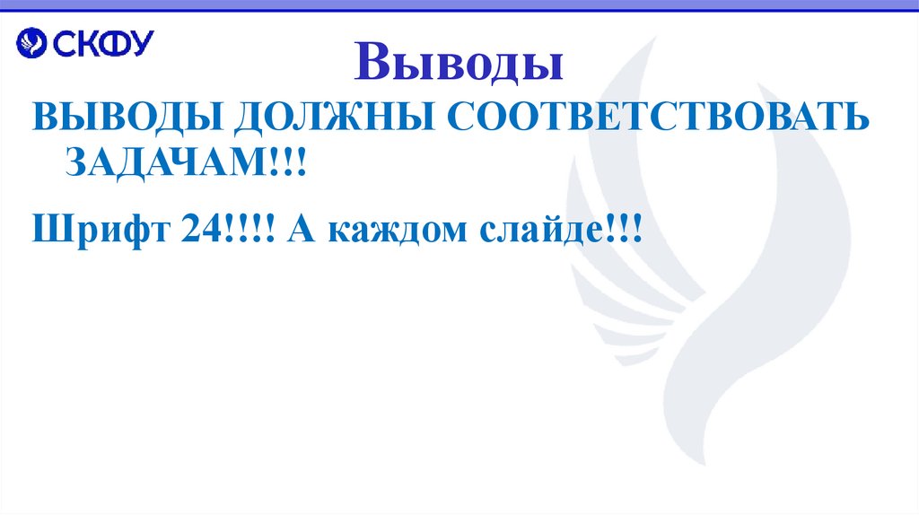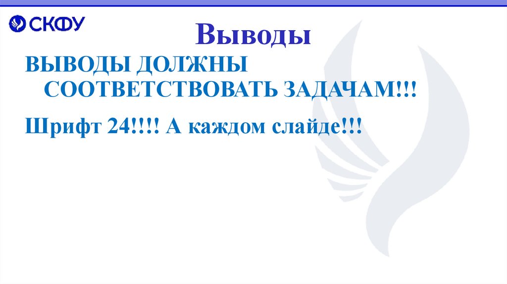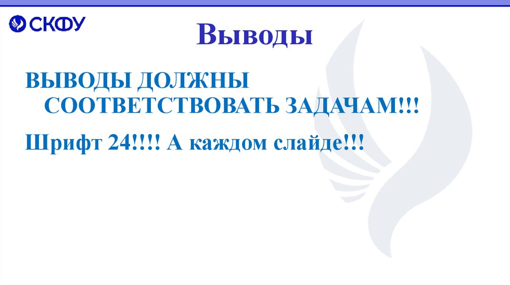 Шрифт 24!!!! А каждом слайде!!!10. Выводы