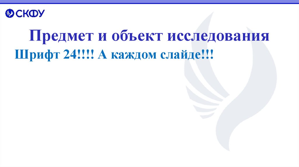 Тезисно !!! Шрифт 24!!!! А каждом слайде!!!4. Предмет и объект исследования